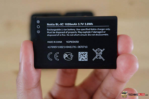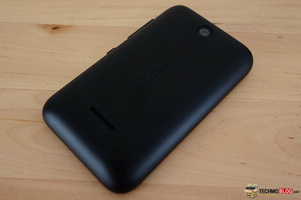 มาดูกันที่ด้านหลังของตัวเครื่องกันบ้างครับ โดยด้านบนนั้น เป็นกล้องดิจิตอล ความละเอียด 1.3 ล้านพิกเซล ไม่มีไฟแฟลช และระบบโฟกัสแบบ Fixed Focus ไม่สามารถเลือกจุดโฟกัสเองได้ ด้านล่างจะเป็นลำโพงเสียง ส่วนฝาหลัง จะเป็นพลาสติกประเภท โพลีคาร์บอเนต ผิวเรียบลื่น