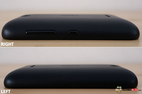 ด้านขวาของตัวเครื่อง ประกอบด้วย ปุ่มปรับระดับเสียง และปุ่ม Power สำหรับเปิด-ปิดเครื่อง หรือล็อคหน้าจอแสดงผล ส่วนด้านซ้ายของตัวเครื่อง ไม่มีปุ่มควบคุมการทำงานใดๆ